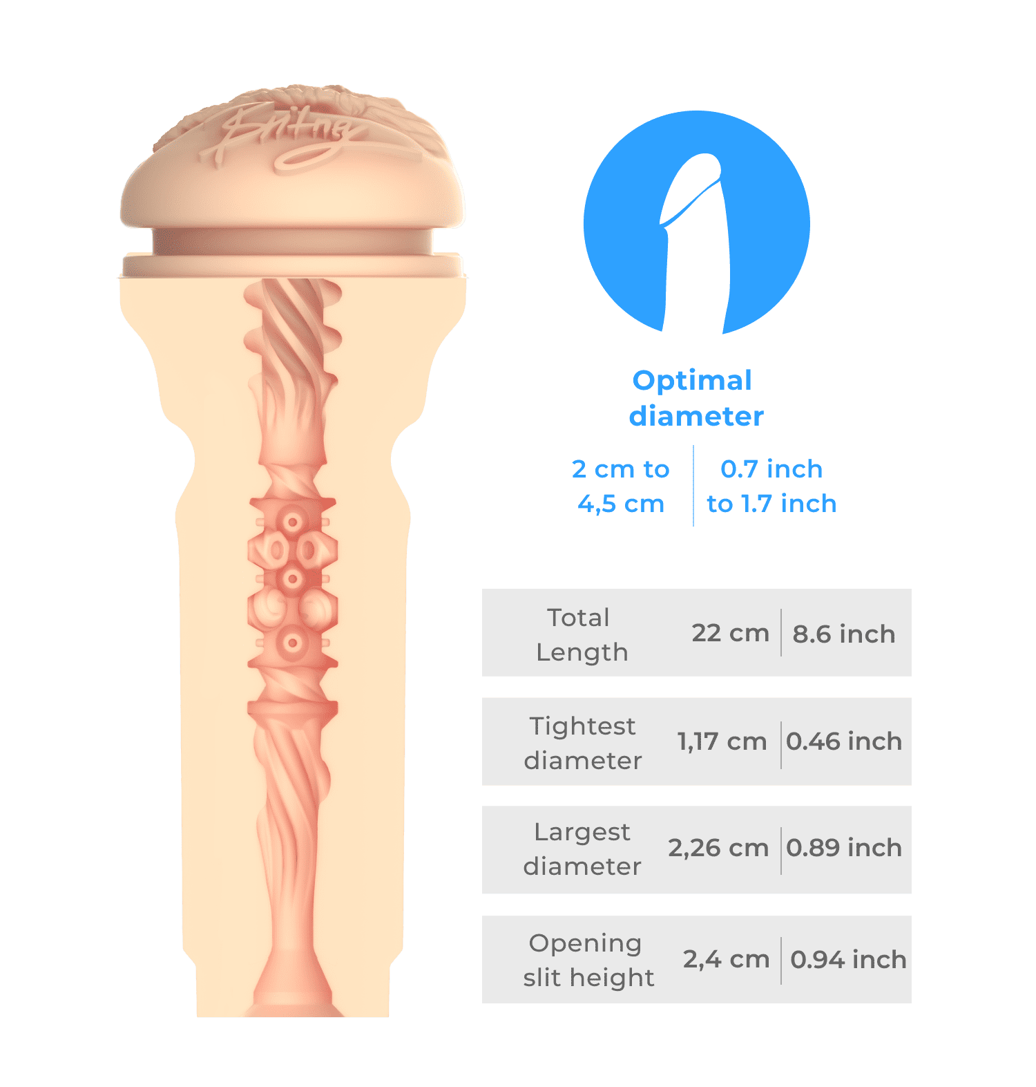 Enter the FeelBritney Stroker and feel the teasing radial lines, followed by pleasure-enhancing bumps. Deeper inside, more radial lines intensify the sensation, leading to a tighter, thrilling finish.
